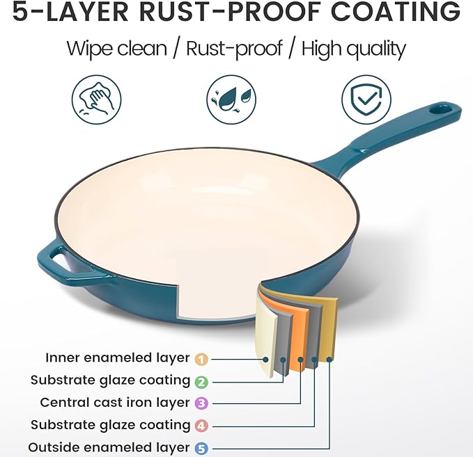 MÜELLERHOME 4.5 QT Enameled Cast Iron Dutch Oven, Heavy-Duty Casserole Dish and Braiser Pan with Lid and Stainless Knob, Oven-Safe up to 500° F & Across All Cooktops, Aqua Blue -