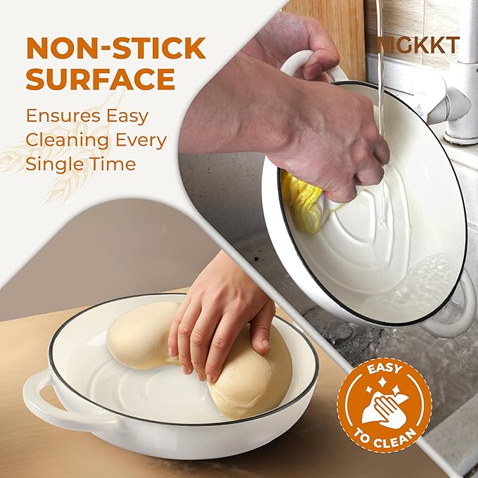 MGKKT Enameled Cast Iron Dutch Oven Pot for Sourdough Bread Baking, 5 Quart Non Stick Cloche Homemade Bread Oven with Lid, Baking Gifts, Alpine Oat White -