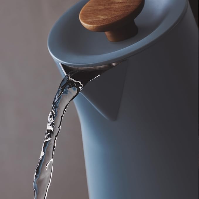 Fellow Corvo EKG Pro Electric Tea Kettle - Quick Heating, Precise Temperature Control Electric Kettle, Scheduling, Built-in Brew Timer for Boiling Water - Hazy Blue with Maple Handle - 0.9 Liter -