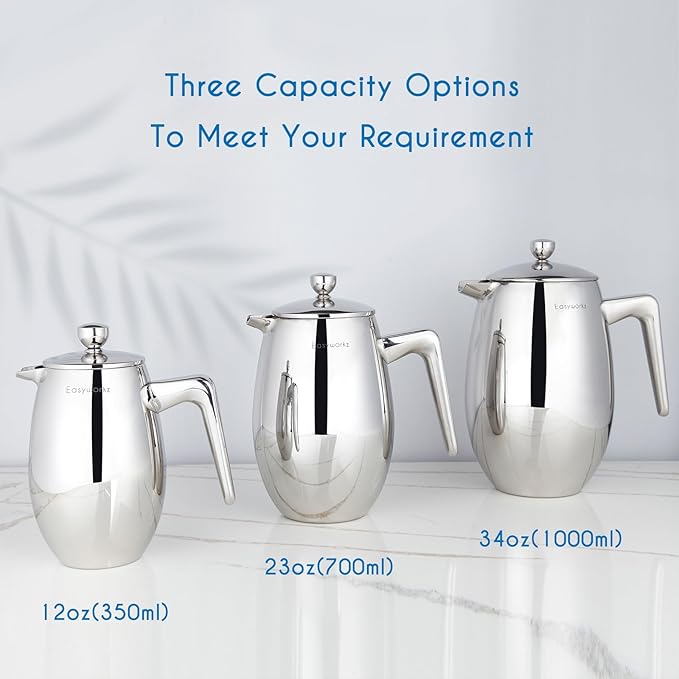 Easyworkz Nando French Press 23 oz Double Wall Insulated Thermal Coffee Maker,304 Stainless Steel Cafetiere -