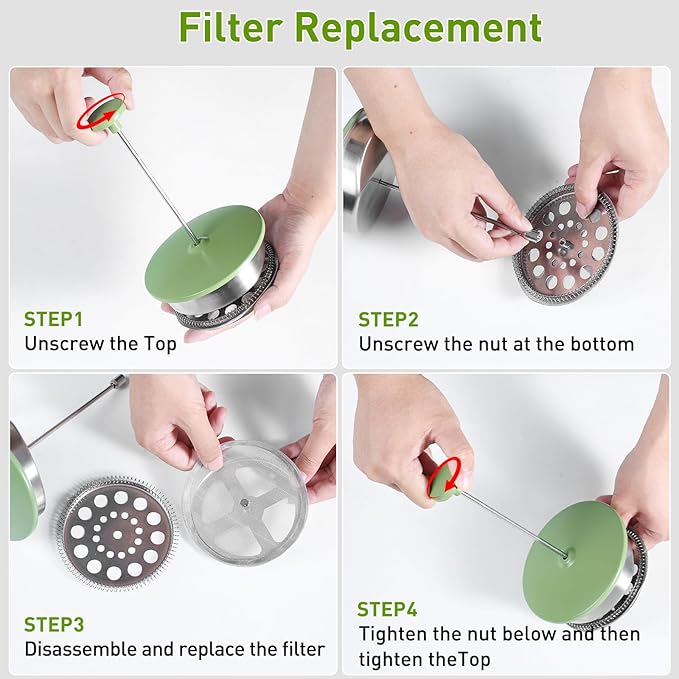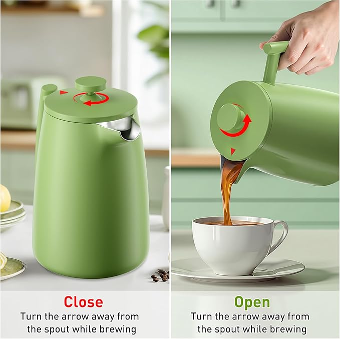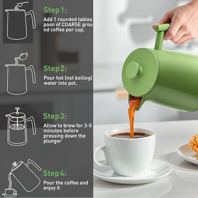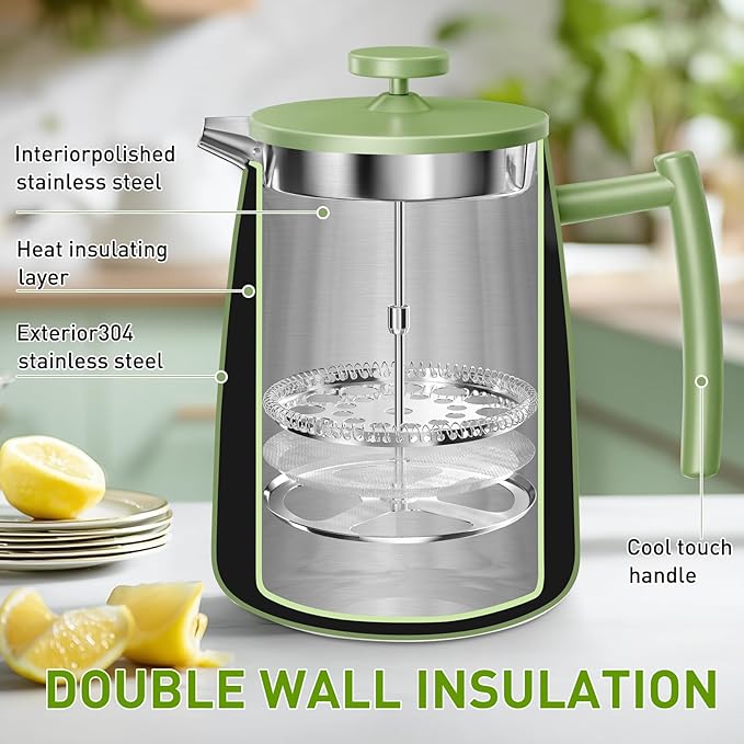 Secura 50oz French Press Coffee Maker – 304 Stainless Steel, Insulated Coffee Press with Extra Filter, Green -
