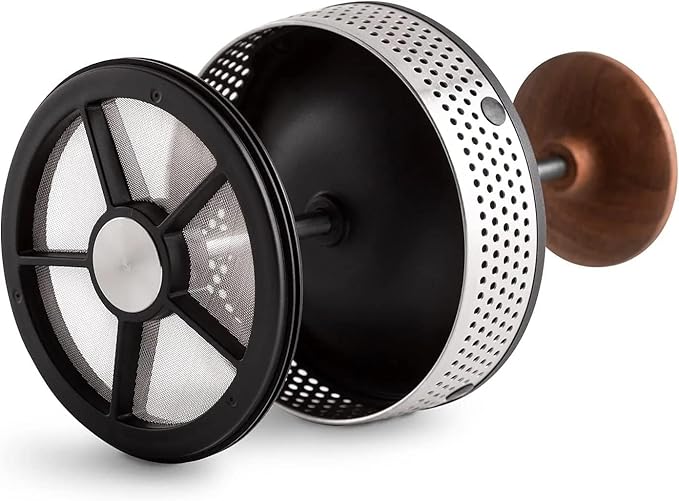 Fellow Clara French Press Coffee Maker - Portable Stainless Steel Coffee Press, Insulated Manual Brewer, Matte Black with Walnut, 24 oz Carafe -