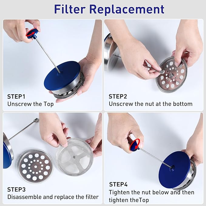 Secura 50oz French Press Coffee Maker – 304 Stainless Steel, Insulated Coffee Press with Extra Filter, Blue -