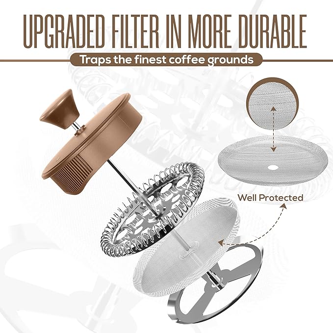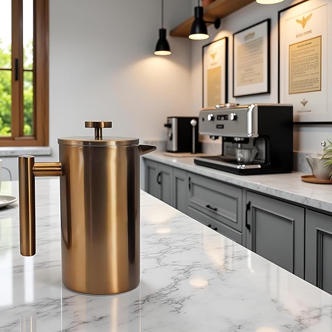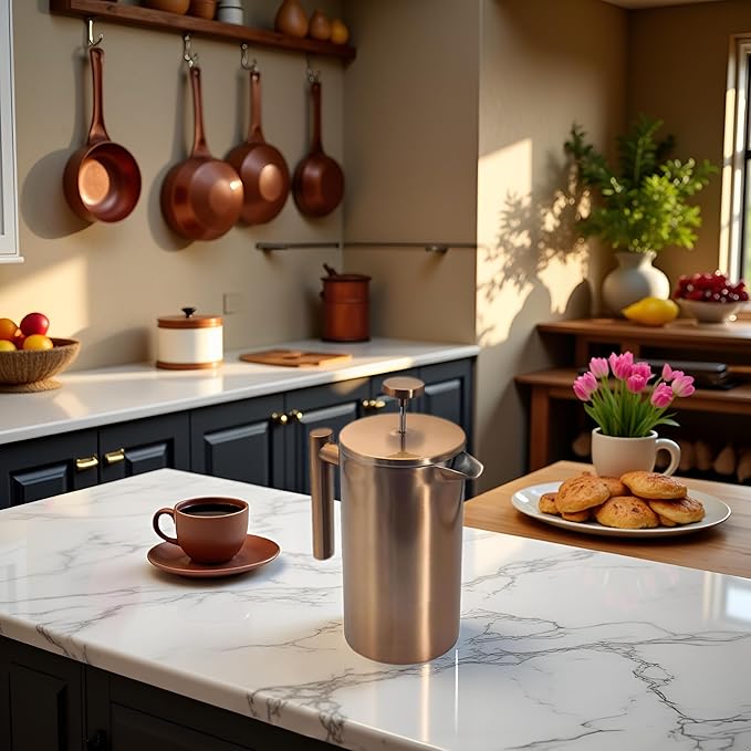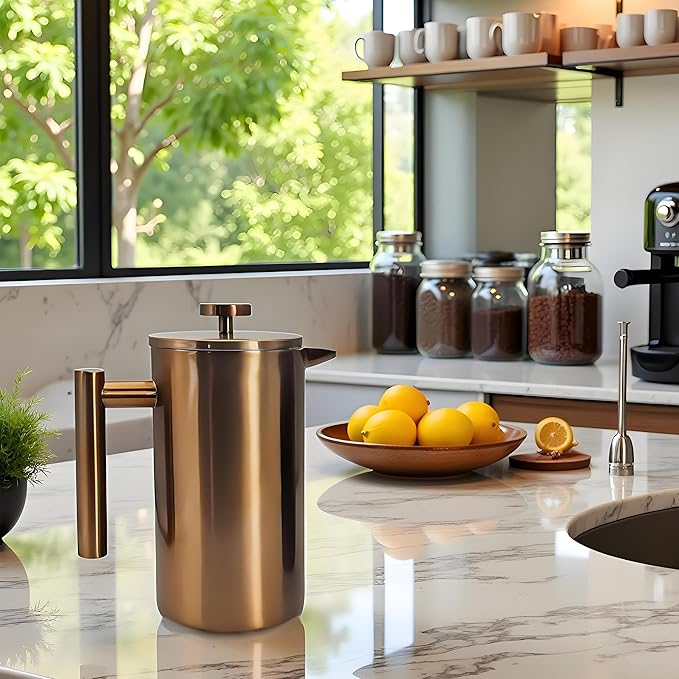 YJX 34oz Coffee Maker, Stainless Steel French Press, 1 Liter Camping Coffee Pot, Tea Maker, 34 Ounce Travel Coffee Presses, Heat Resistant Double Insulated (Coppery) -