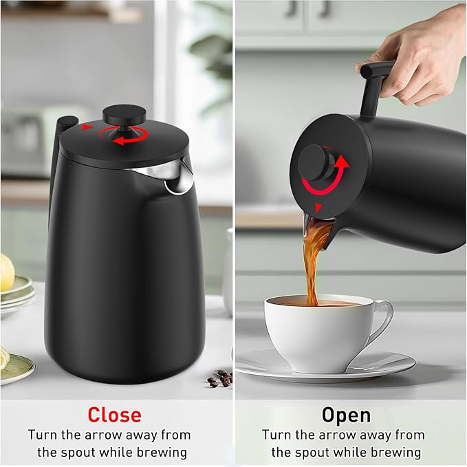 YJX 34oz Coffee Maker, Stainless Steel French Press, 1 Liter Camping Coffee Pot, Tea Maker, 34 Ounce Travel Coffee Presses, Heat Resistant Double Insulated (Black) -
