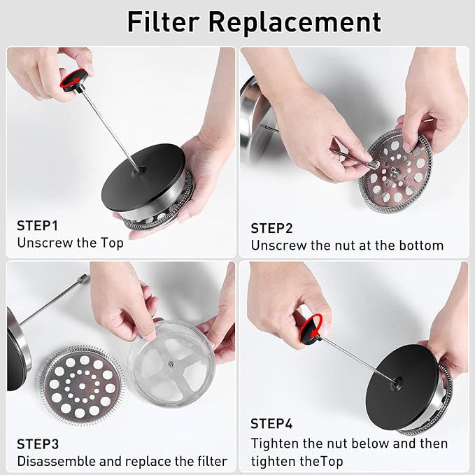 Secura 50oz French Press Coffee Maker – 304 Stainless Steel, Insulated Coffee Press with Extra Filter, Black -