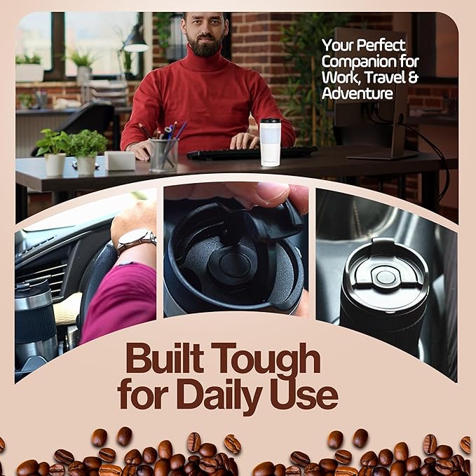 15oz Double Wall Stainless Steel Insulated French Press Coffee and Tea Maker - Portable Camping Tea, Coffee Mug and Tumbler (White) -