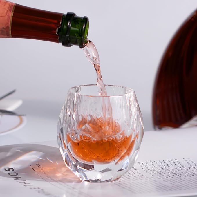 KAMMAK Crystal Whiskey Glasses Set of 2, Handcrafted Old Fashioned Glasses Stemless, 3.71oz Hand Blown White Cocktail Glasses, Engagement Gifts for Couples, Women, Men