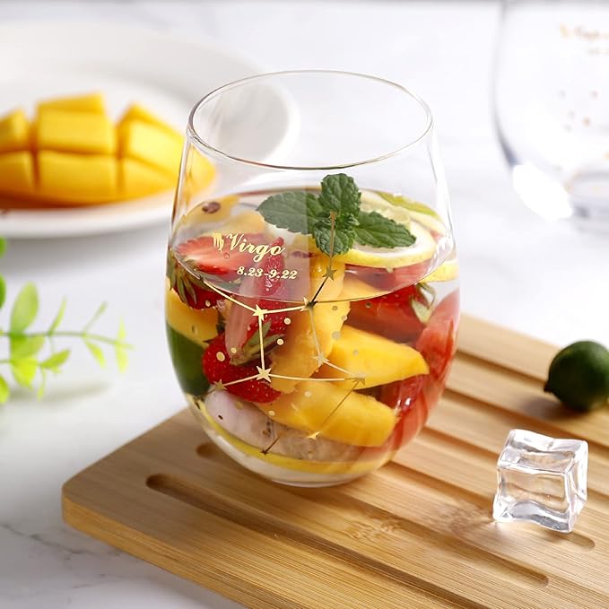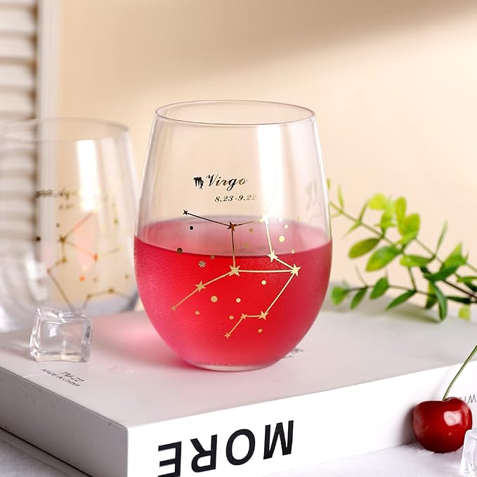 HOHY Virgo Wine Glass Virgo Birthday Gifts 20oz, Virgo Stemless Wine Glasses, Aastrology Zodiac Gifts Constellation Glass Define Design, Horoscope Gift, September Birthday Gifts for Women Men -
