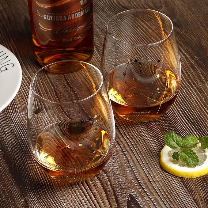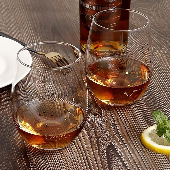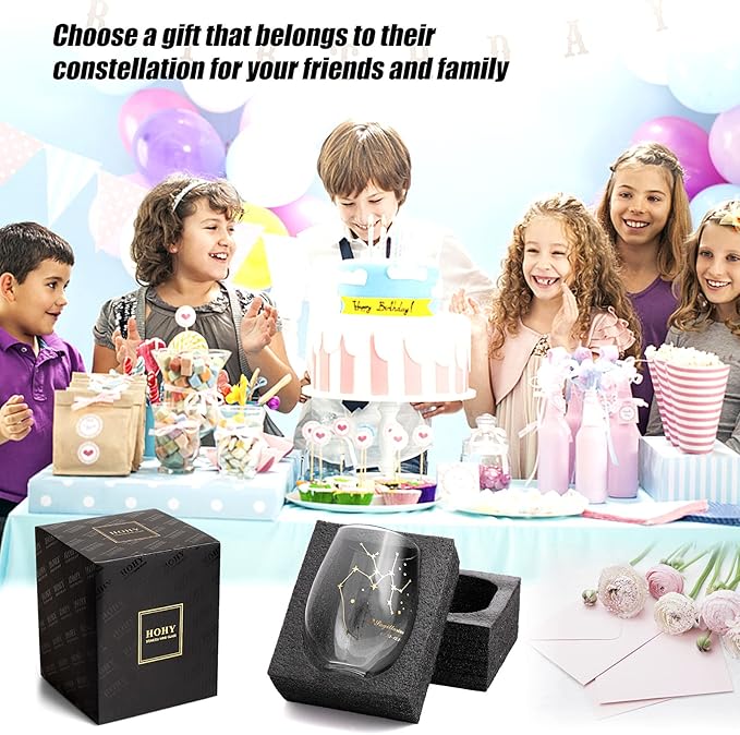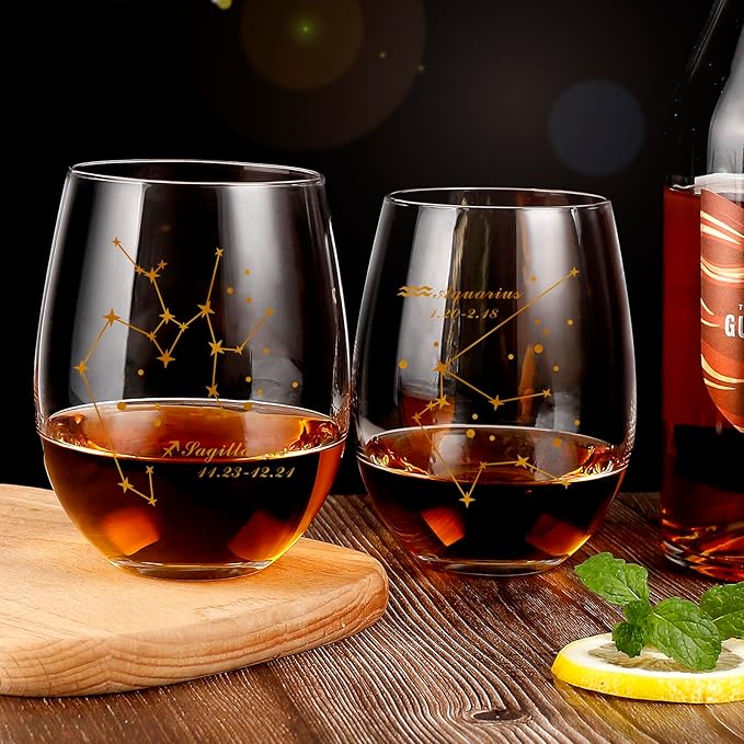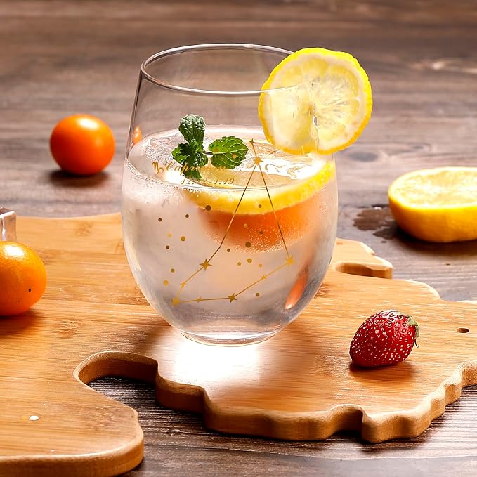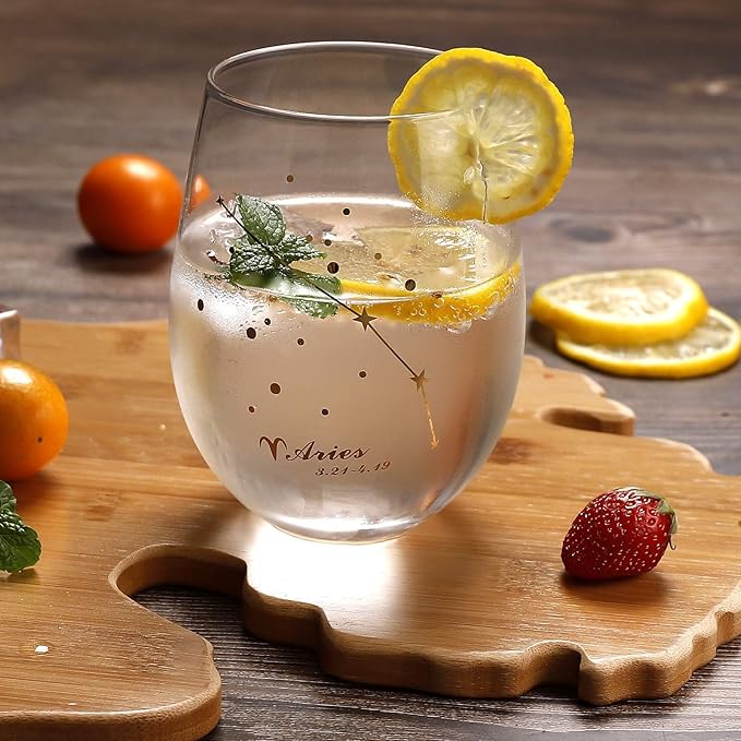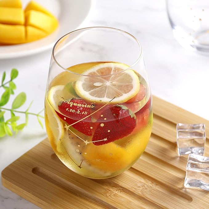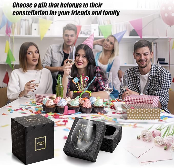 HOHY Aquarius Wine Glass - 20oz Stemless Zodiac Constellation Glass, Gift for Women & Men -