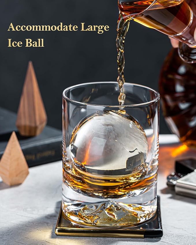 JBHO Hand Blown Crystal Double Old Fashioned Cocktail, Solid Whiskey Glasses, Rocks Glasses, Lowball Glasses - 12 Ounce - set of 2 - Perfect Size for Oversized Ice Cubes -