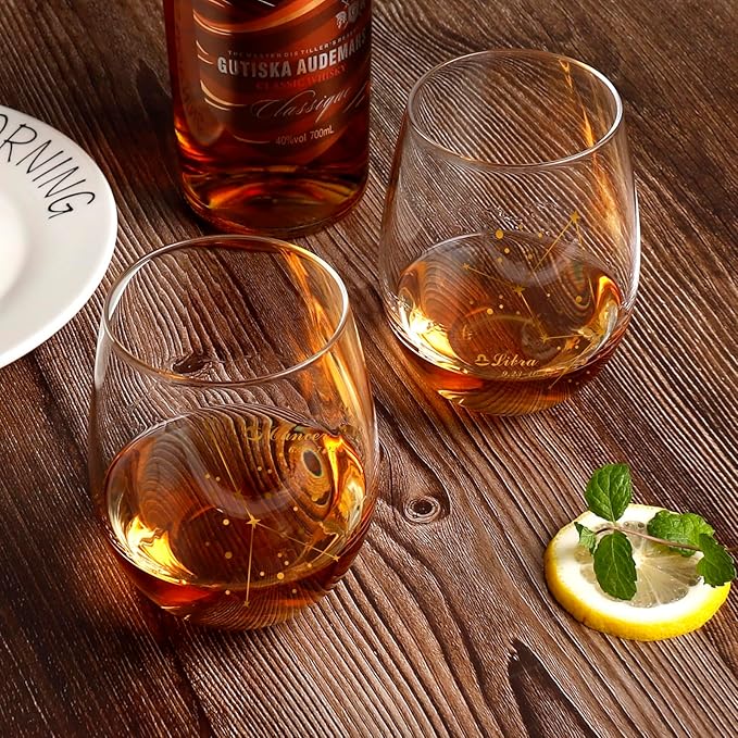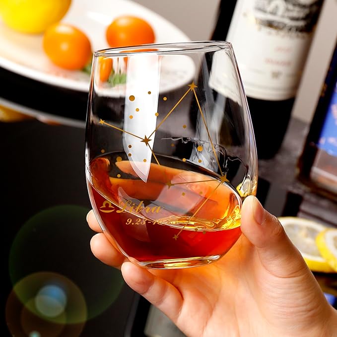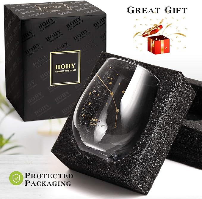HOHY Libra Wine Glass - Stemless, 20oz Zodiac Sign Constellation Glass, Horoscope Gift for Women & Men -