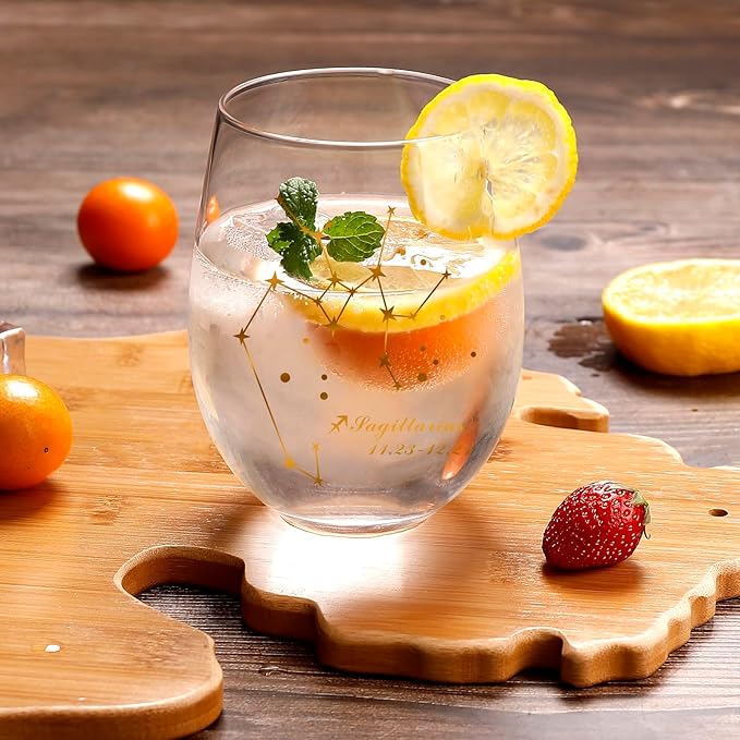HOHY Sagittarius Zodiac Wine Glass - 20oz, Crystal Stemless, Star Constellation, Astrology Gift for Women & Men -