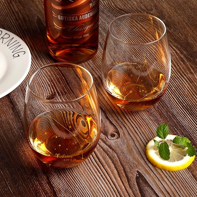 KAMMAK Crystal Whiskey Glasses Set of 2, Luxury 7.78oz Old Fashioned Glasses Stemless, Hand Blown Cocktail Glasses, Handcrafted Engraved Scotch Cup for Women, Men Gift for Bourbon Barware -