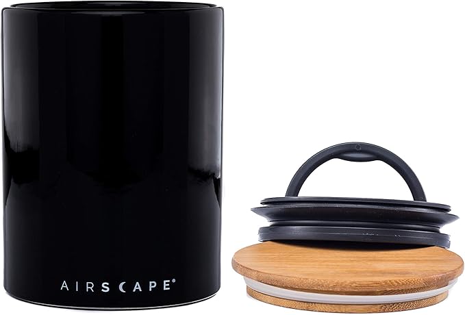 AirScape Planetary Design Ceramic Coffee and Food Storage Canister – Small 4-inch – US Patented Airtight Inner Lid – Black with Bamboo Top