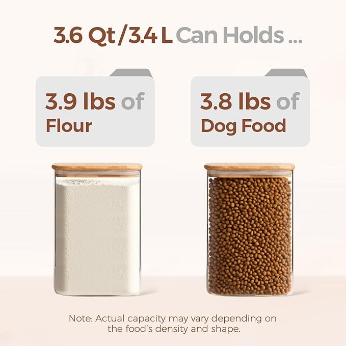 ComSaf 3.6Qt Glass Food Storage Containers, Cereal Storage Containers with Airtight Lids, Large Square Glass Jars with Bamboo Lids, for Rice, Pasta, Oats, Grains, Coffee Beans -