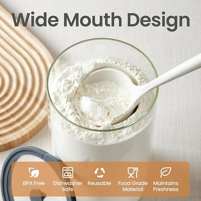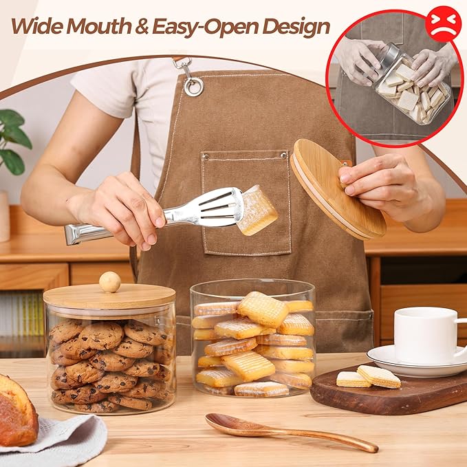 ComSaf Glass Food Storage Containers, 3.2Qt / 1.4Qt Glass Flour and Sugar Containers with Airtight Lids, 7.1'' Wide Mouth Large Glass Jars with Bamboo Lid for Rice, Pasta, Oats, Grains, Cookie, Candy -