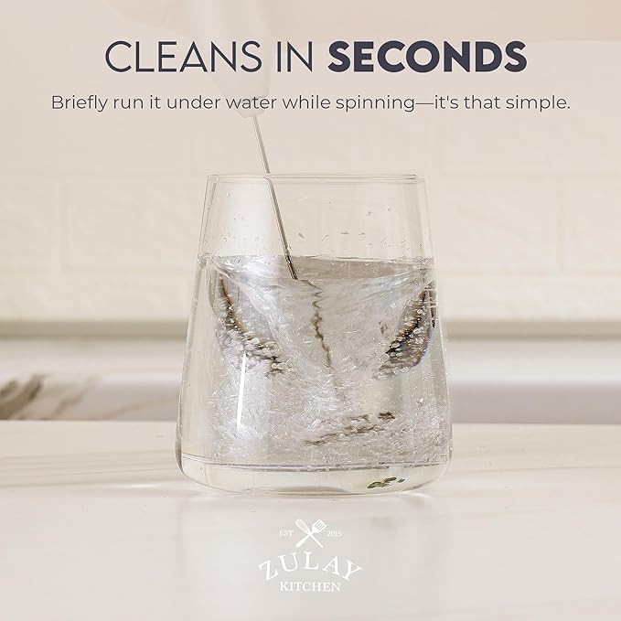 Zulay Kitchen Milk Frother with Patented Tornado Triple Whisk – Handheld Foam Maker for Coffee, Lattes, Matcha & Hot Chocolate – Rich, Creamy Froth in Seconds - -