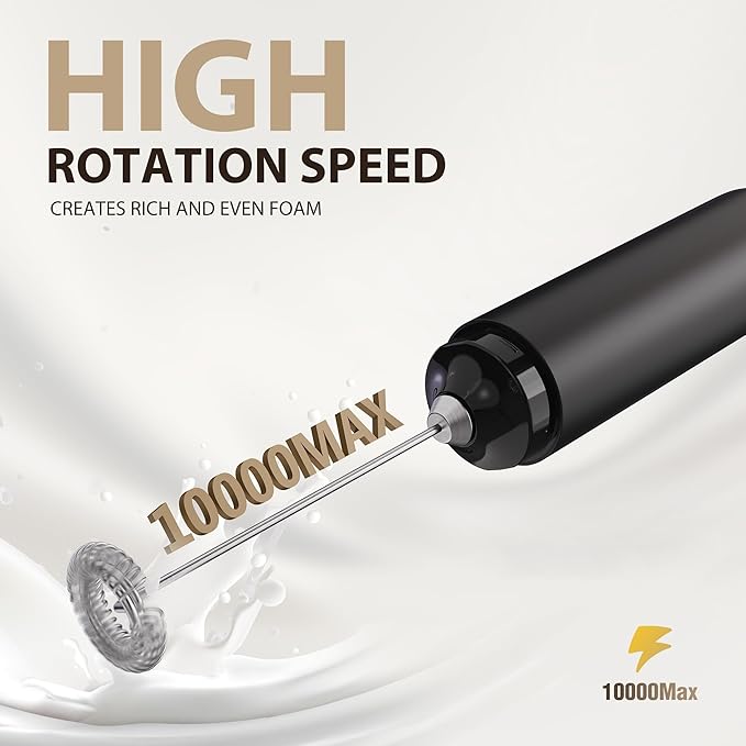 Black Milk Frother Wand, Electric Foam Maker Frother Wand, Hand Mixer for Lattes, Stainless Steel Mixing Head, Detachable for Cleaning, Cappuccino - Kitchen Gift -