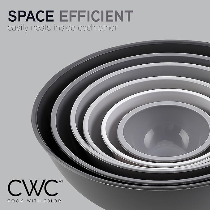 COOK WITH COLOR Plastic Nesting Mixing Bowls Set - 12 Piece includes 6 Prep Bowls and 6 Lids, Microwave Safe (Gray Ombre) -