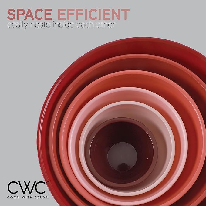 COOK WITH COLOR Mixing Bowls with Lids - 12 Piece Plastic Nesting Bowls Set includes 6 Prep Bowls and 6 Lids, Rhombus Design - Microwave Safe (Rose) -