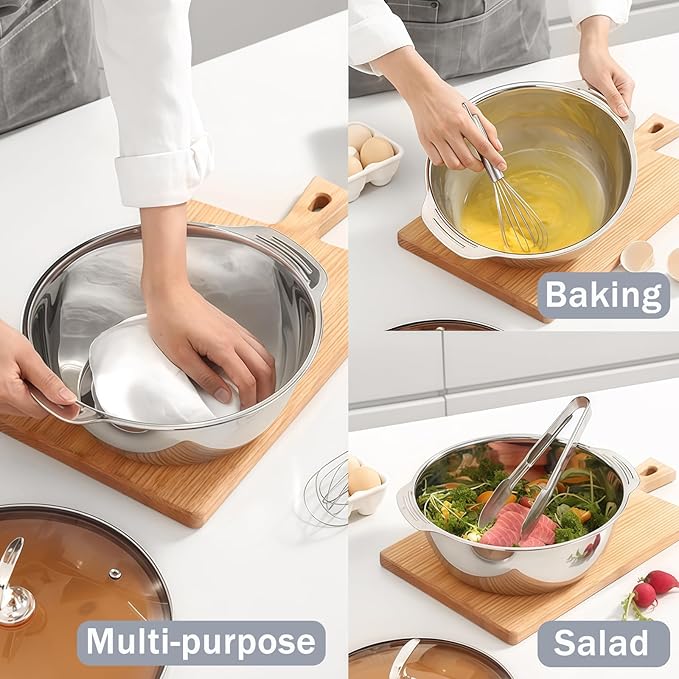 Mixing Bowls with Strainer, Mixing Bowl with Lids Set, Stainless Steel Mixing Bowls, Kitchen Gadgets 2025 Salad Bowls with Strainer for Mixing & Preping & Baking, Multicolor