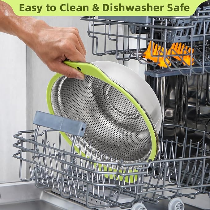 Colander Stainless Steel Microporous, 2QT Rice Strainer with Mixing Bowl, Rice Washer Bowl Set with Handle, Food-Grade Strainers and Colanders for Kitchen, Pasta, Fruit, Dishwasher Safe -