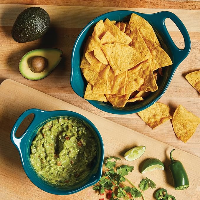Rachael Ray Ceramics Nesting Mixing Bowl Set with Pour Spout, 1 Quart and 2 Quart, Teal -