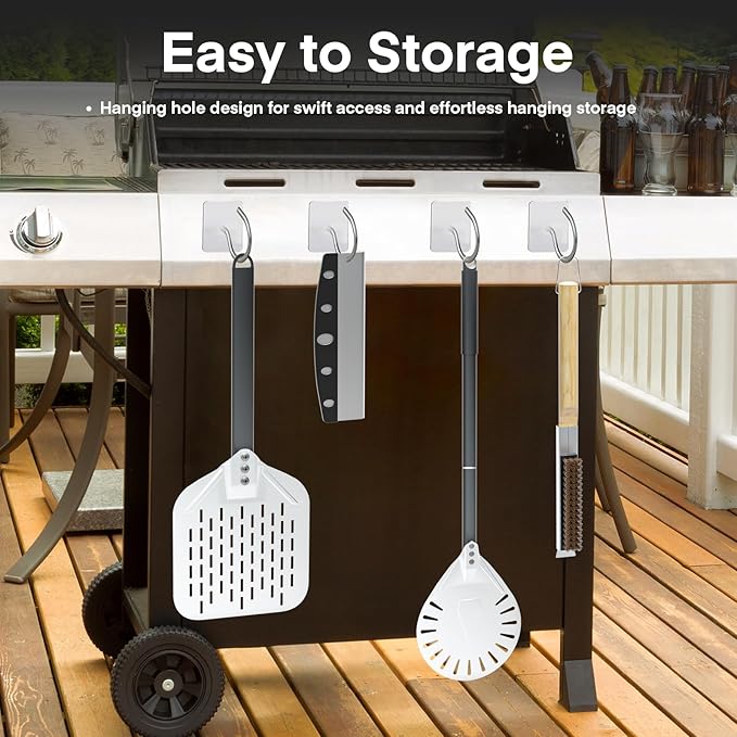4PCS Pizza Oven Accessories, Yofuly 12 Inch Perforated Pizza Peel, 9 Inch Round Turning Peel, Pizza Stone Cleaning Brush with Scraper, Rocker Cutter, Homemade Pizza Supplies Tools Kit -