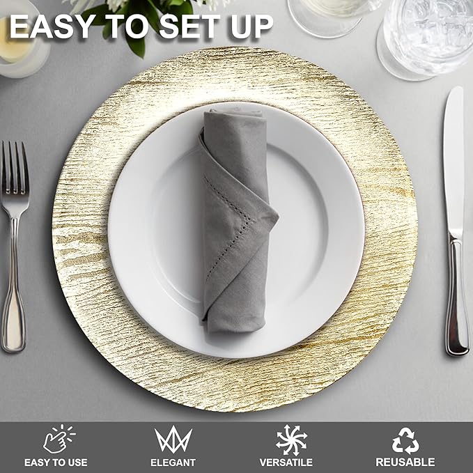 allgala Heavy Quality Round Charger Plates - Dinner Plates - Set of Charger Plates for Table Decor - Ideal for Weddings, Weddings, Thanksgiving Parties & Holidays - Peacock Gold (13-Inch 48-Pack) -