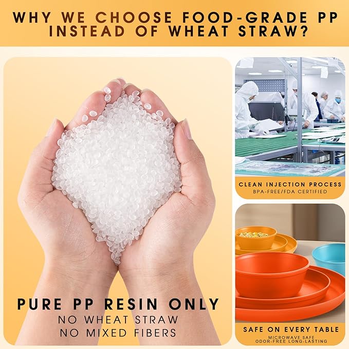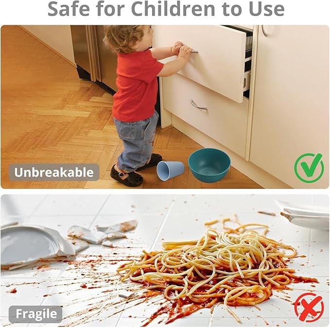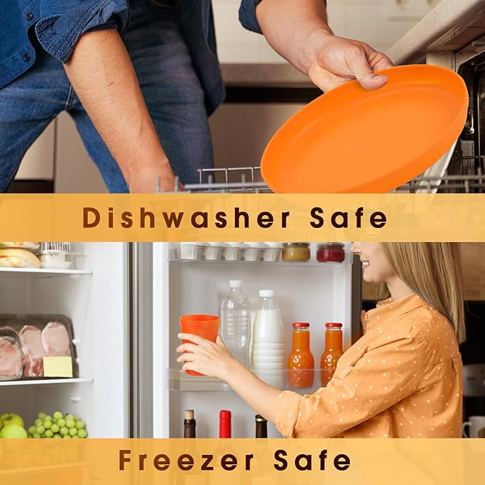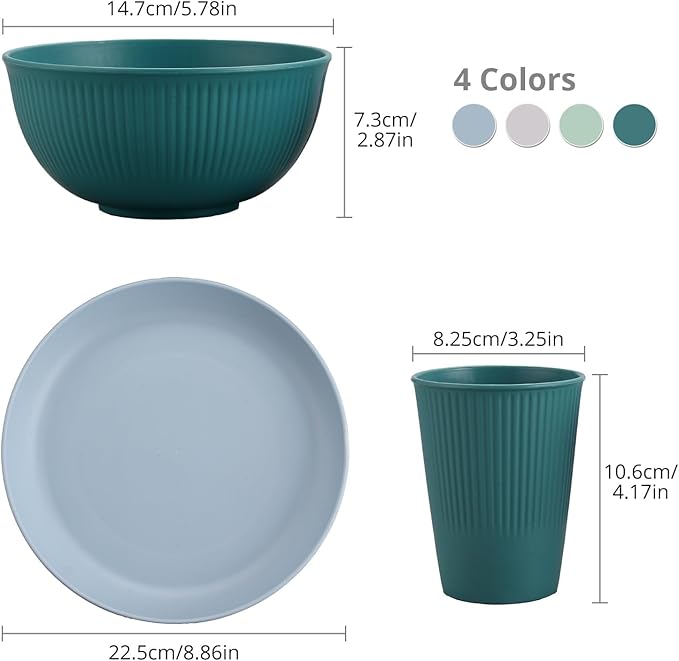 Tanice Kids Dinnerware Set, 12PCS Plastic Plates and Bowls Sets, Kids Dinnerware Set for 4, Plastic Dishes Set with Pltaes, Bowls, Cups for Kitchen, Outdoor Camping -