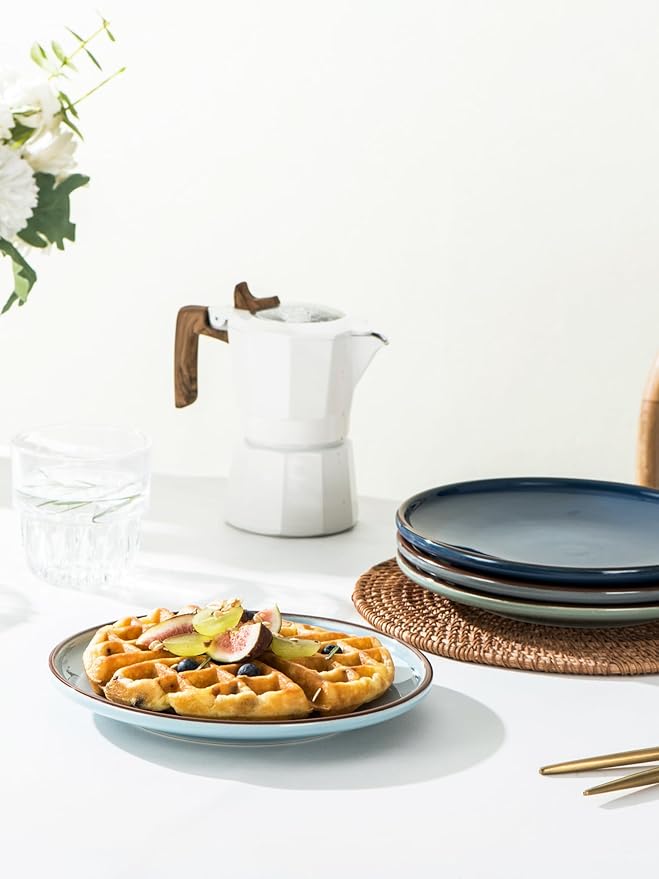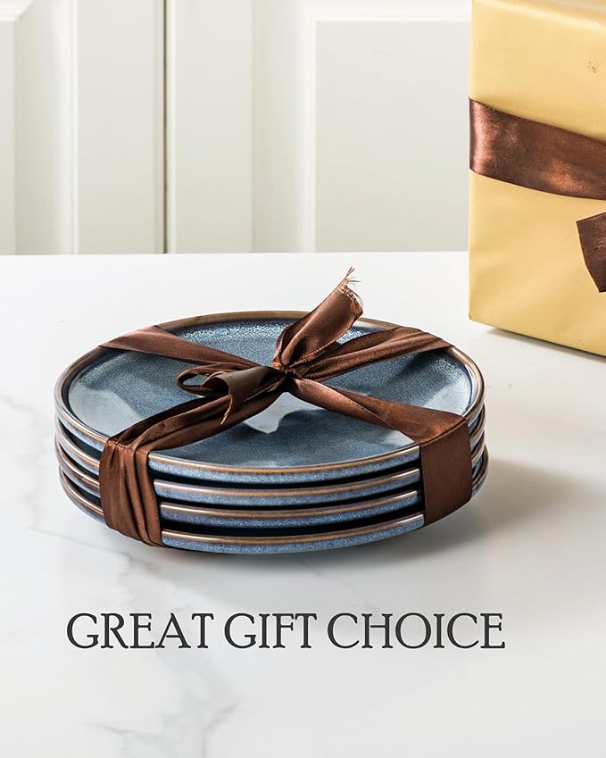UNICASA Ceramic Dessert Plates - Dinner Salad Plates Set of 4, 8.25 Inch Round Serving Dishes Set for Pasta - Stoneware Dinnerware Set Kitchen, Dishwasher, Microwave & Oven Safe (Blue) -