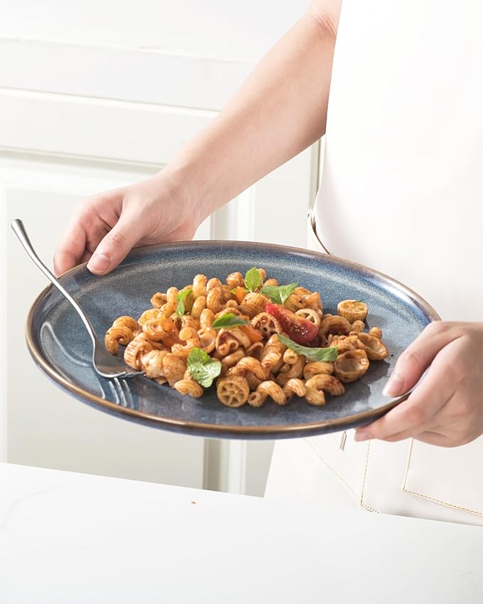 UNICASA Ceramic Large Dinner Plates - 11 Inch Dessert, Salad Plate Set of 4 for Steak, Pasta, Dinnerware Sets, Scratch Resistant - Porcelain Serving Dishes, Dishwasher & Microwave Safe (Blue) -