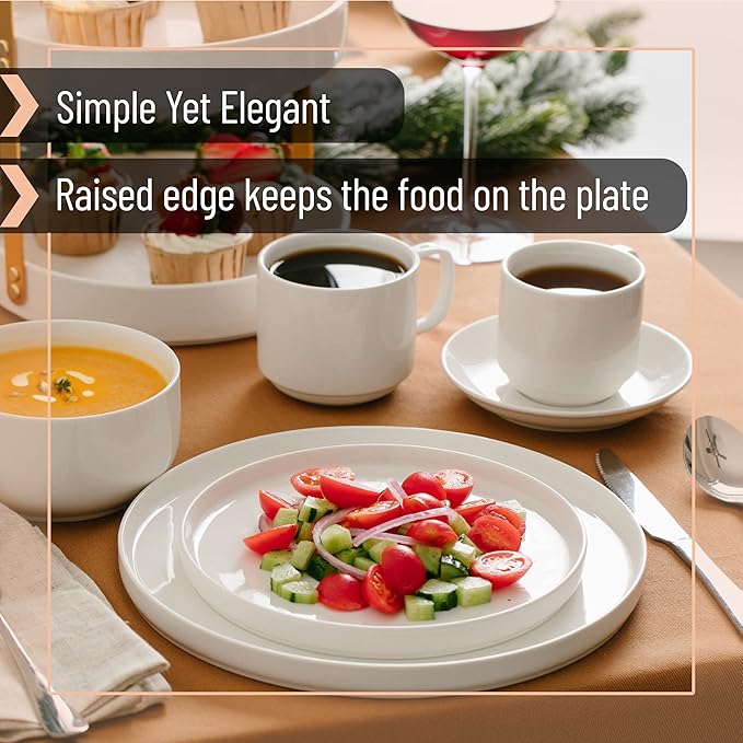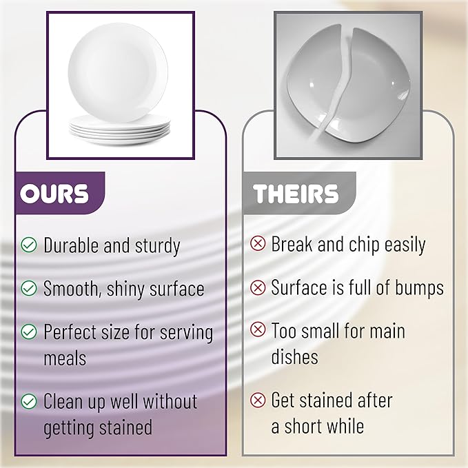 WENSHUO Dinner Plates Set of 6, Chip and Scratch Resistant (Nacre White, 8.5 Inch) -
