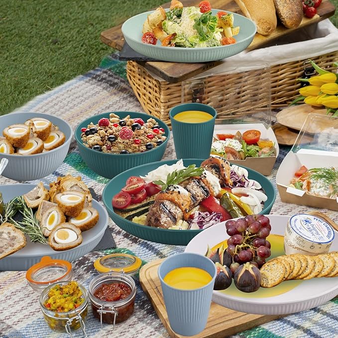 Plastic Dinnerware Sets – 40-Piece Colorful Plates and Bowls Set for 8, Reusable Unbreakable Fiesta Style Party Dishes with Cups, Knives, Forks and Spoons, for Outdoor, Picnic or Everyday Use -