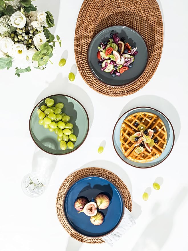 UNICASA Ceramic Dessert Plates - Salad Plates Set of 4, 8.25 Inch Round Serving Dishes Set for Pasta - Stoneware Dinnerware Set for Kitchen, Dishwasher&Microwave Safe - Assorted Colors -