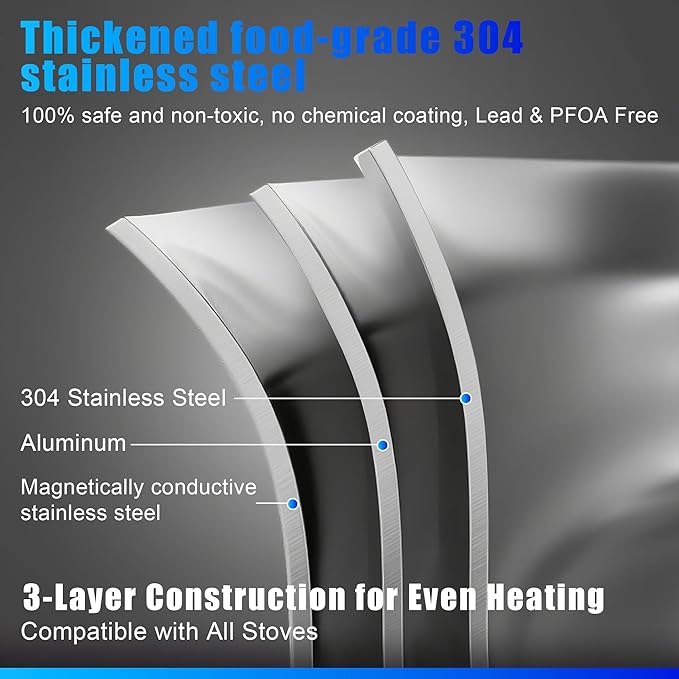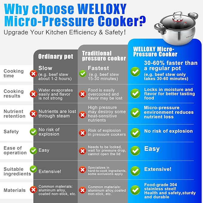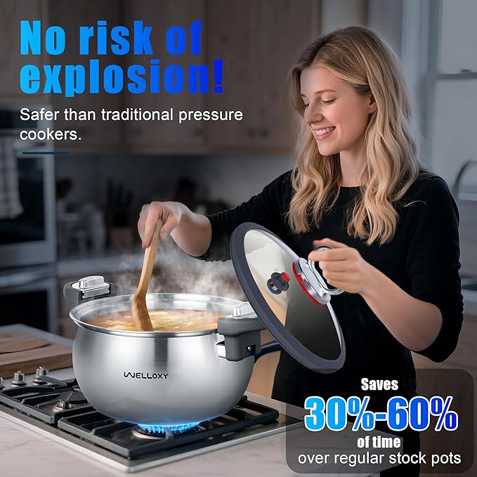 WELLOXY 3-Ply Stainless Steel Micro-Pressure Cooker 7.5Qt - Dutch Oven, Stock Pot, Stew Pots with Locking Lid for Soup, Braising, Pasta, Saves Time & Energy, Lead & PFOA Free (Not a High-Pressure Pot) -