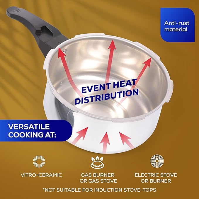 Universal (3.7 Quart / 3.5 Liter) Small Anti-Rust Ultra Pressure Cooker, Aluminum Pressure Cooker for 4 Servings, Even Heat Distribution, Diameter 9.4 inches, Height 7 inches -