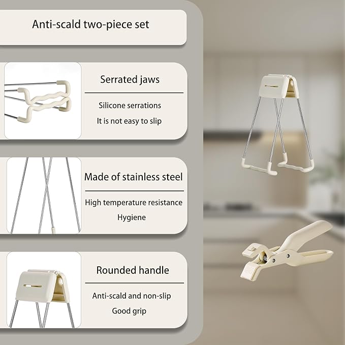 Hot Plate Gripper,bowl Holders for Hot Food,anti Scald Bowl Holder Clip,Stainless Steel Bowl Clip 2-Piece Set with Food Out From Instant Pot Microwave Oven,Air Fryer, Steamer -
