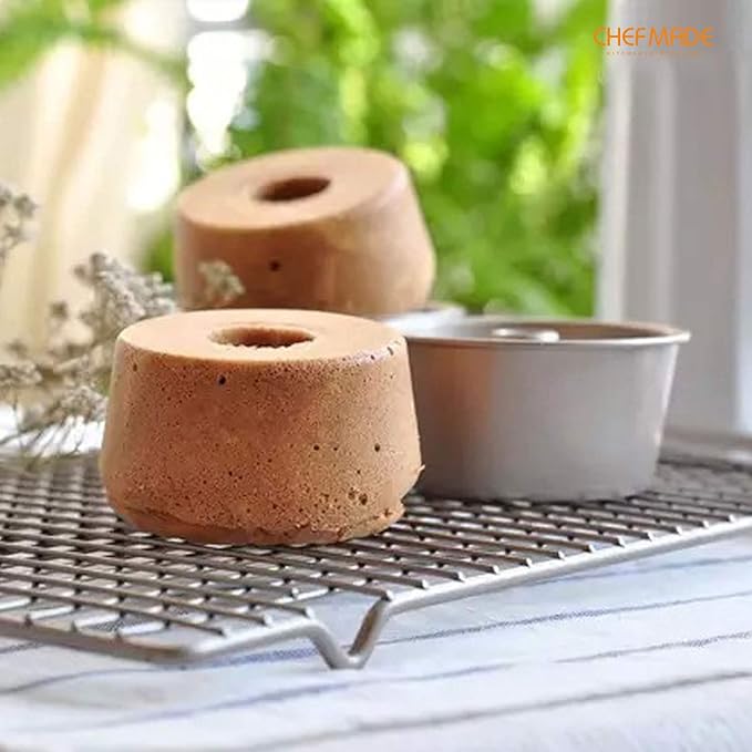CHEFMADE Mini Angel Food Pan Set, 3.5-Inch 4Pcs Non-Stick Chiffon Tube Pan for Oven and Instant Pot Baking (Champagne Gold) -