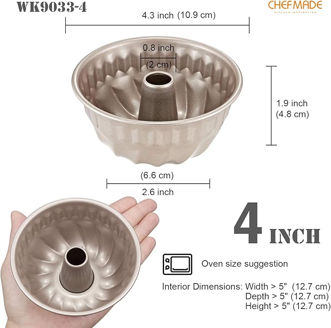 CHEFMADE Mini Tube Pan Set, 4-Inch 4Pcs Non-Stick Kugelhopf Mold for Oven and Instant Pot Baking (Champagne Gold) -
