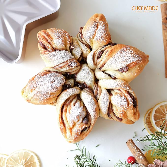 CHEFMADE Star-Shaped Cake Pan, 8-Inch Non-Stick Diamond Surface Cake Bread and Meat Bakeware for Oven and Instant Pot Baking (Champagne Gold) -