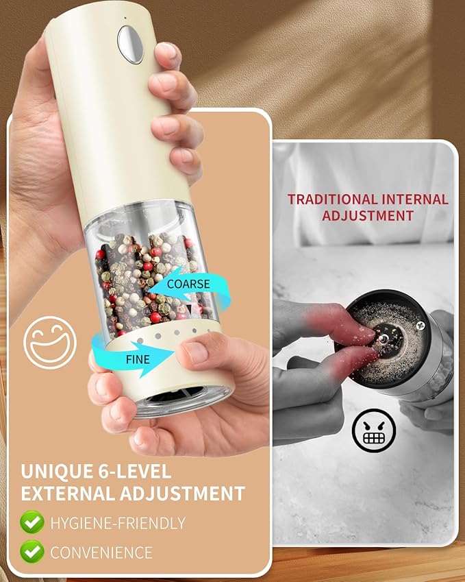 Ultrean Electric Pepper Grinder, Rechargeable Salt and Pepper Grinder with 6 Adjustable Coarseness, LED Light, One-Hand Automatic Operation, Cream -