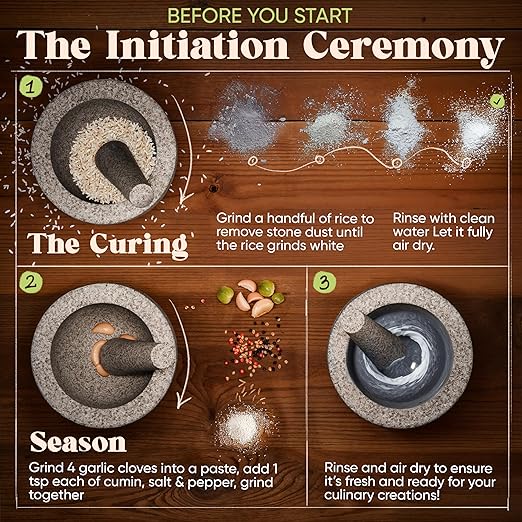 2 Sets Umien™ Granite Mortar and Pestle Set - 100% Granite - 3.5-Cups - 8-Inch – Avocado Tool Included – Natural Stone Molcajete for Spices, Pestos, & Guacamole (Grey) - Stone Grinder - Guacamole -