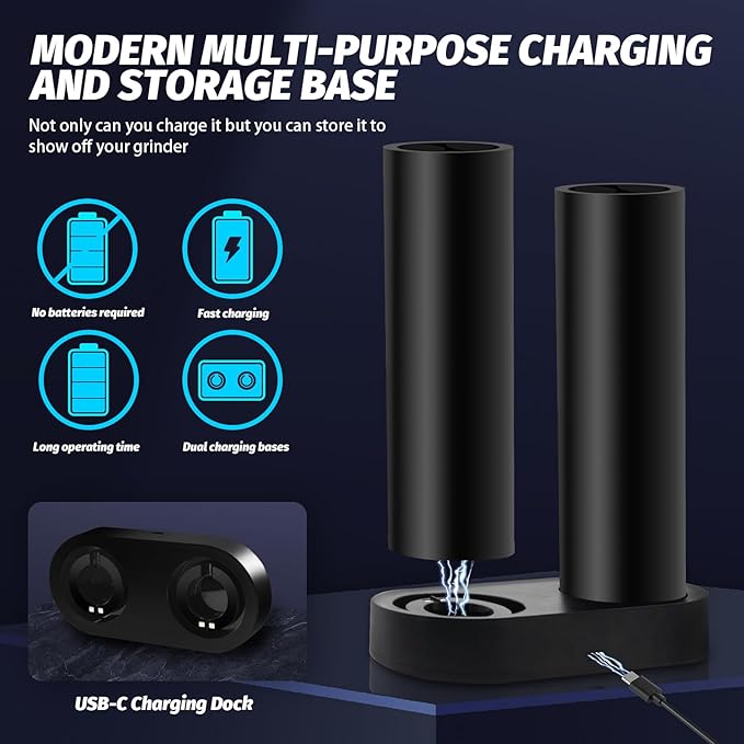 Electric Salt and Pepper Grinder Set Rechargeable with Easy to Carry Charging Base and LED Light, Adjustable Coarseness, Greater Capacity, USB for Kitchen, Restaurant -