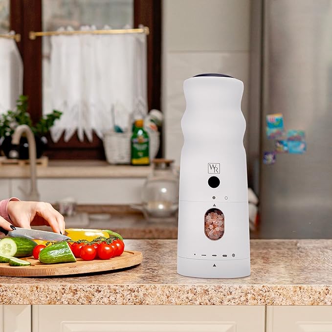 WHITE RAIN Salt Mill with LED Lights & Adjustable Coarseness, Aluminum Rechargeable Salt Grinder Refillable Heavy Duty Electric Himalayan Pink Salt Grinder, Kitchen Gadgets -