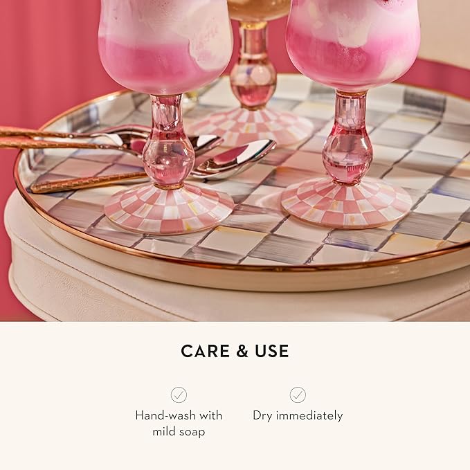 MACKENZIE-CHILDS Enamel Round Tray, Unique Serving Platter for Food and Drinks, Gray-and-White Sterling Check -