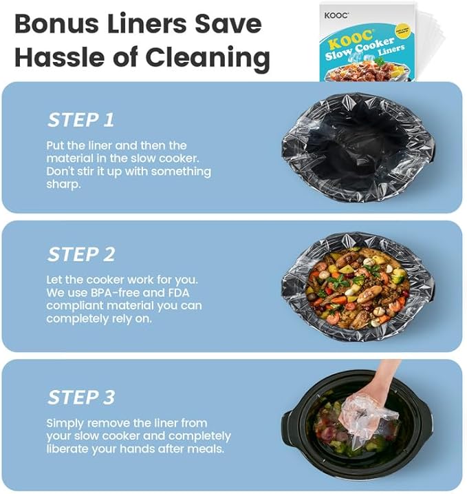 KOOC Slow Cooker Liners 8"x11" 20 Count Mini Size Disposable Pot Liners Cooking Bags Fit 0.65 qt to 1.25 qt Pot BPA Free Fresh Locking Seal Design -