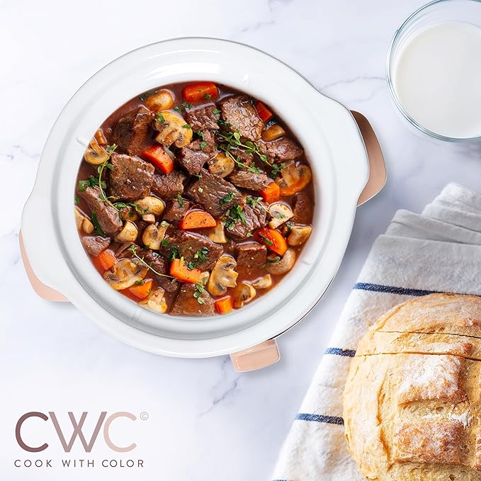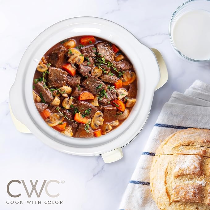 COOK WITH COLOR 2QT Mini Electric Round Slow Cooker - Adjustable Settings, Removable Stoneware Pot, Tempered Glass Lid, Dishwasher Safe, Cool-Touch Side Handles, Cream -