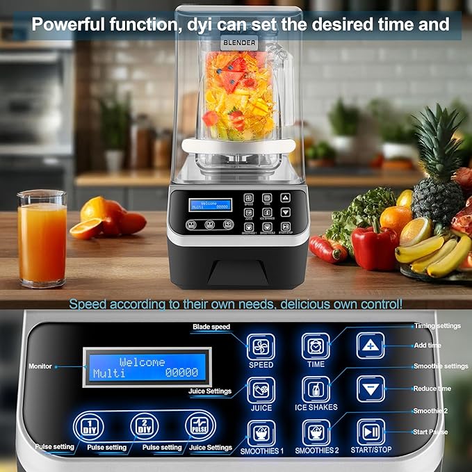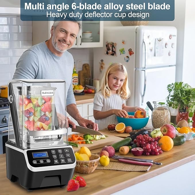 Commercial Blender 2200W 2.1QT 68OZ Quiet Blender Brushless Motors Commercial Smoothies, Frozen Drinks,Self-Cleaning,Electric Countertop Blenders Heavy-Duty,Silver Grey -